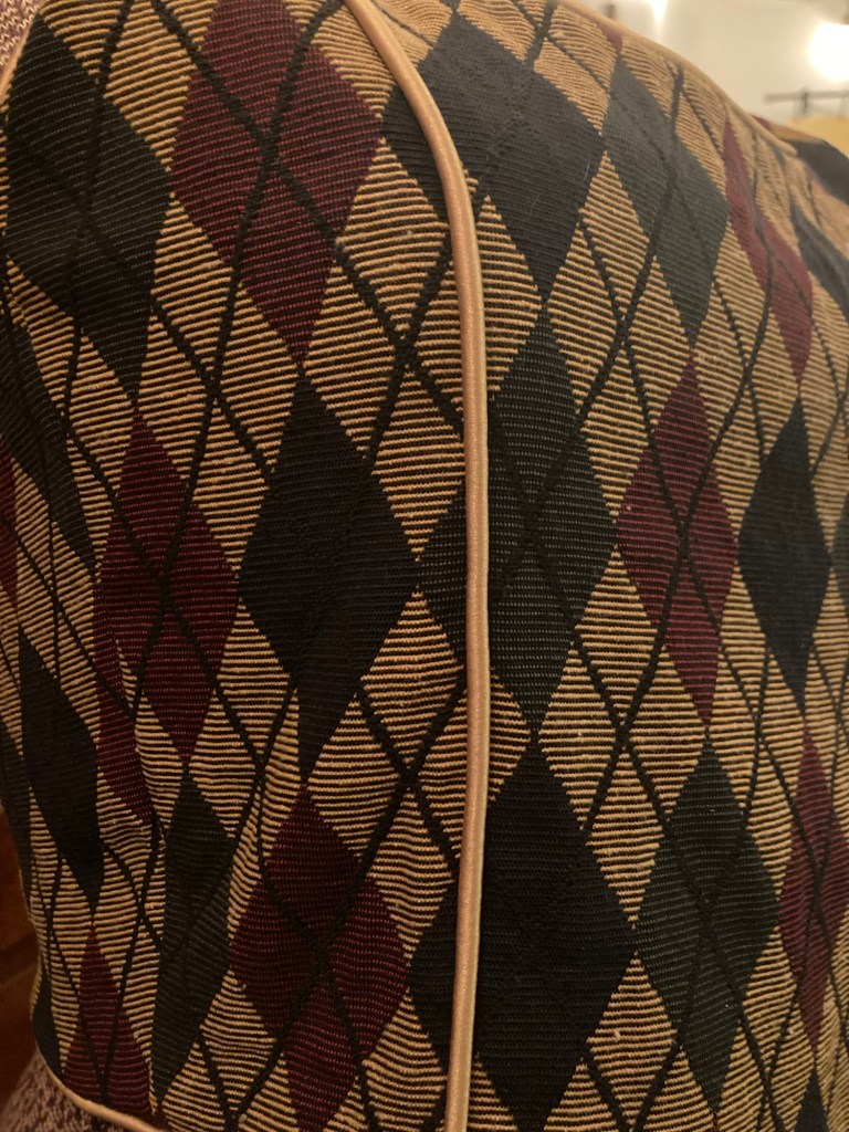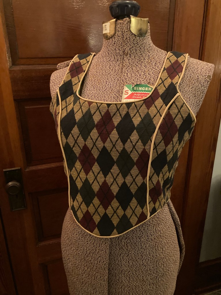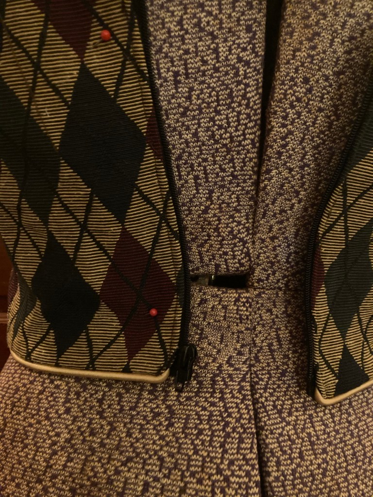 Harlequin patterned top. Jacquard fabric, cotton, cord, zipper.