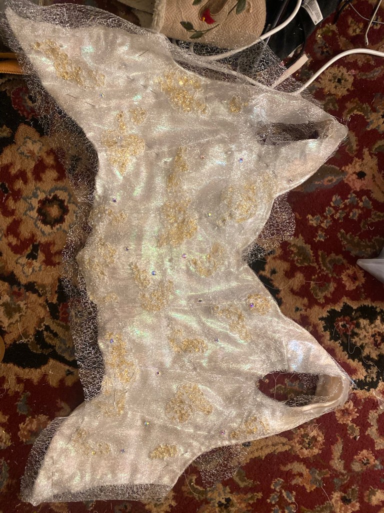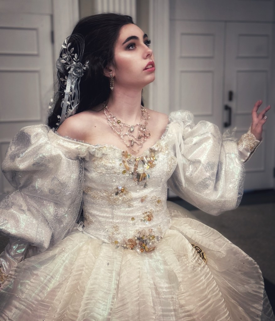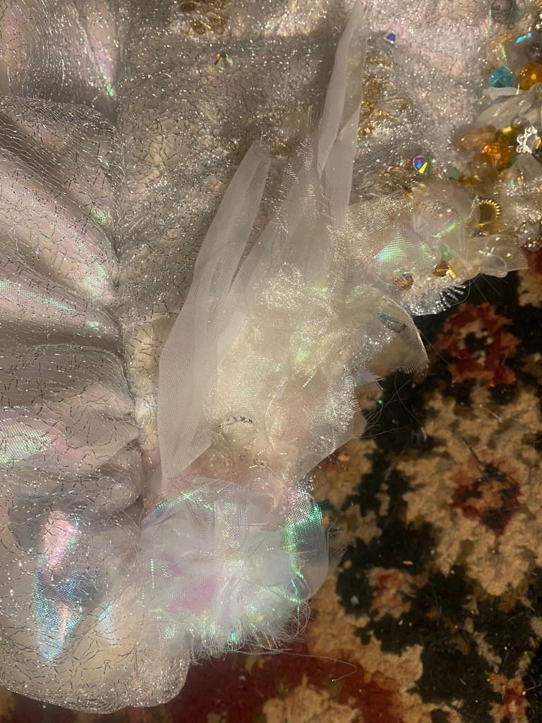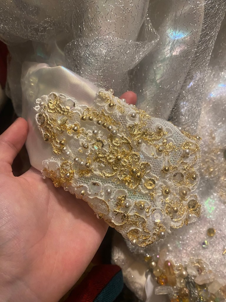 “The Labyrinth” ballgown and accessories. Lace, organza, beads, satin, cotton