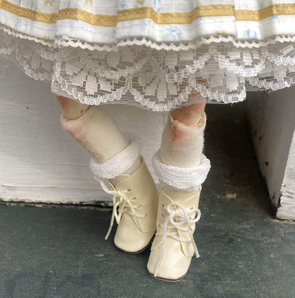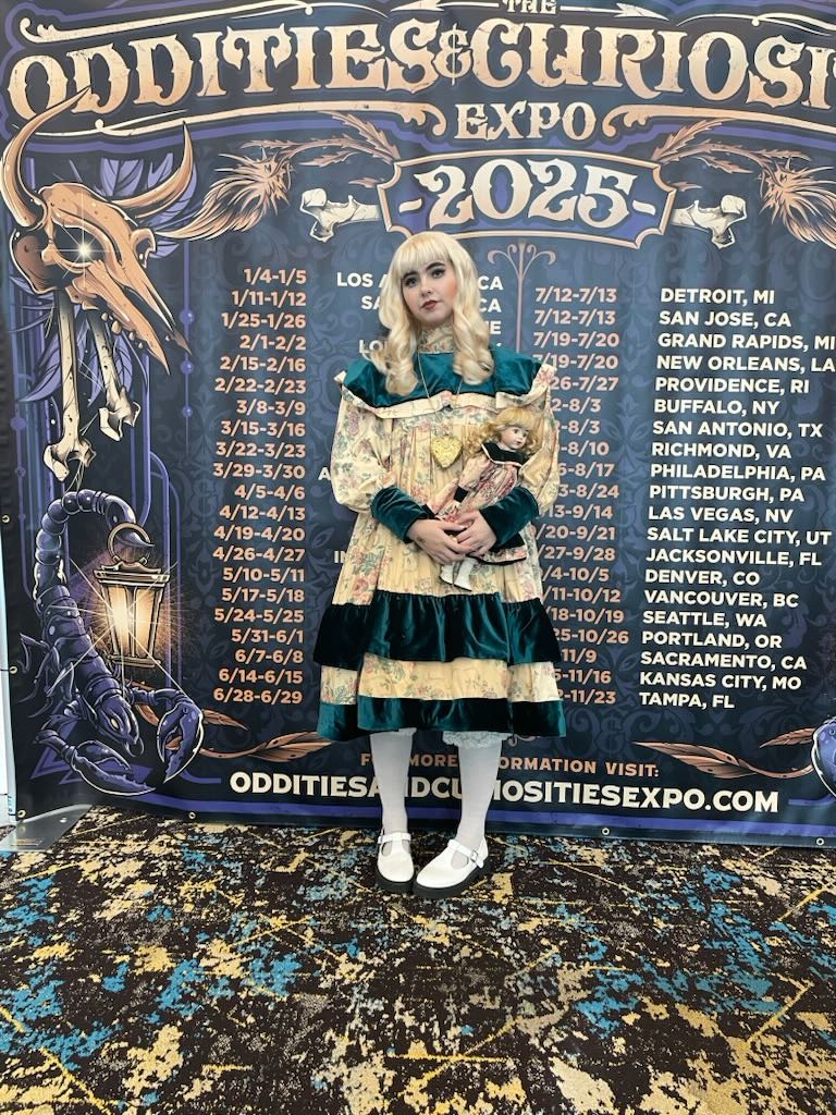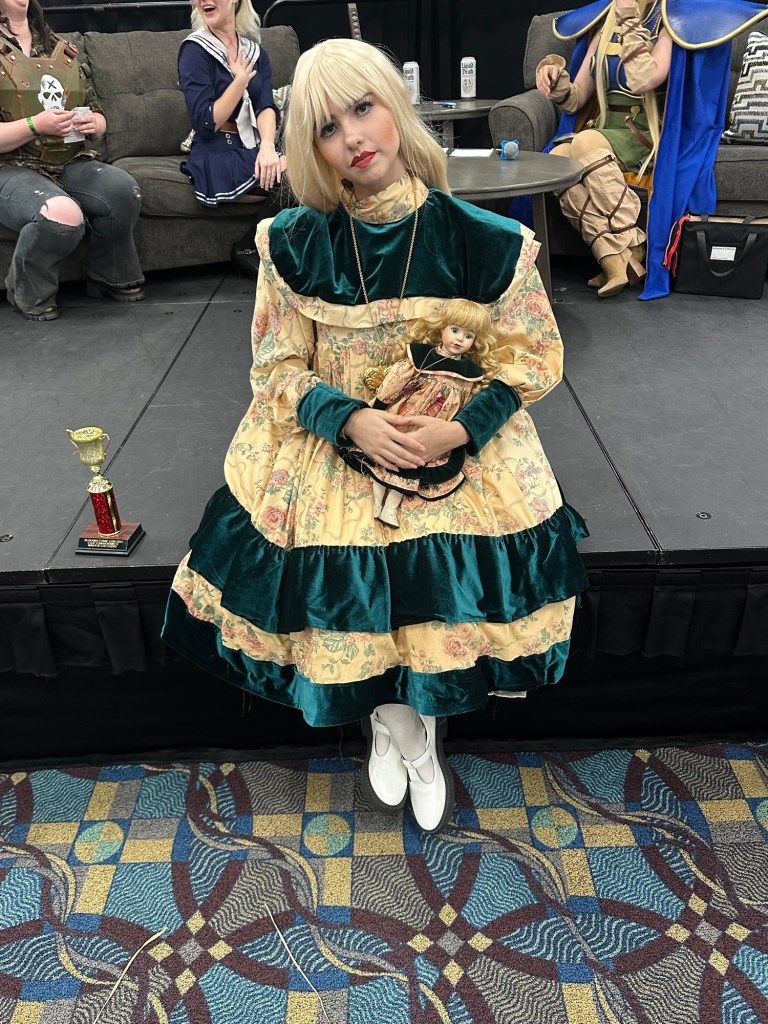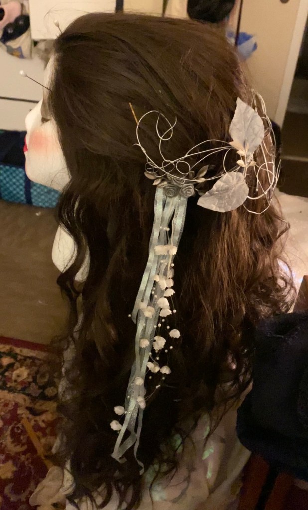 Porcelain Doll costume. Hand dyed cotton fabric, velvet, crinoline netting, foam, Wig styling